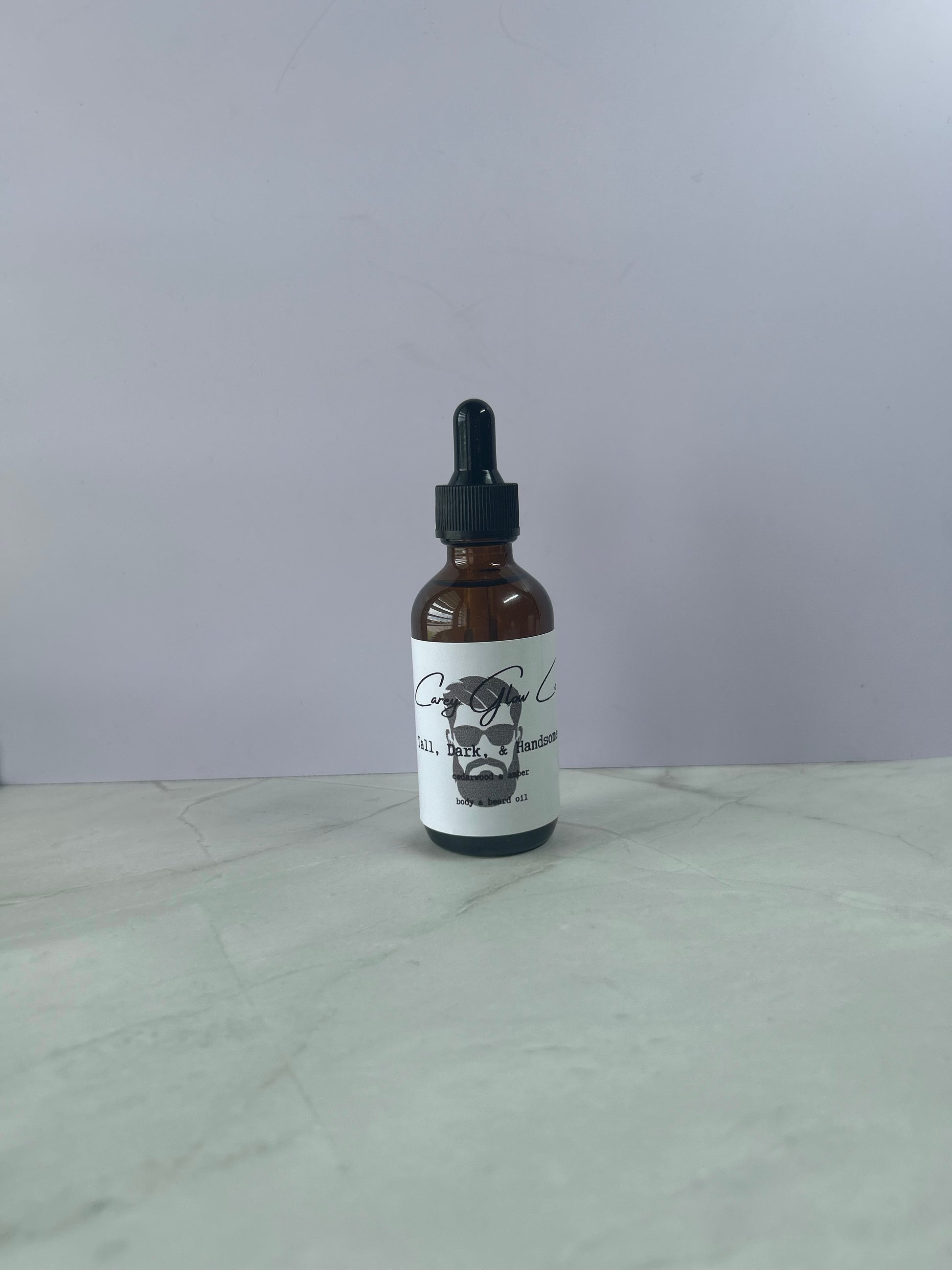 Body & Beard Oil is made with all-natural jojoba oil, grapeseed, sweet almond oil & coconut oils plus fragrance.